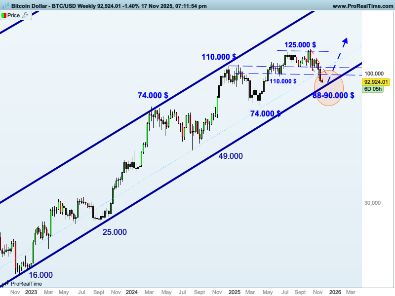 Y la base del canal pasa aproximadamente por la zona de los 88.000-90.000$. Por tanto, vamos a ver si llega a esa zona y la respeta durante las próximas semanas.