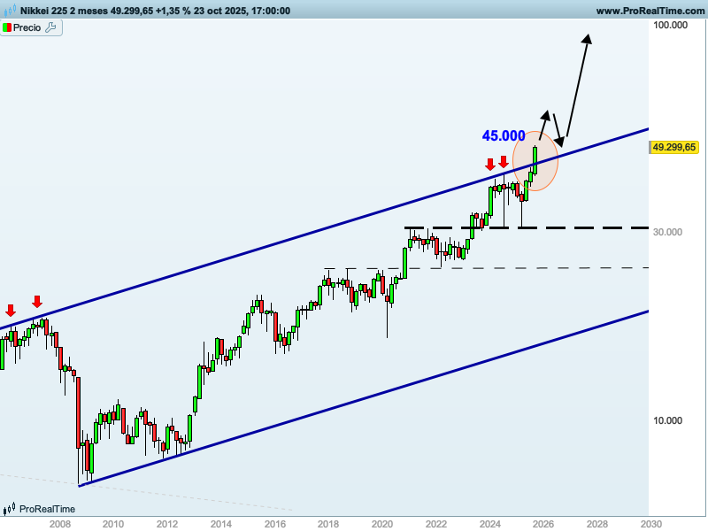 GRÁFICO BIMENSUAL DEL NIKKEI: ESTRUCTURAS Y NIVEL CLAVE  DE LARGO PLAZO Y ESCENARIO MÁS PROBABLE