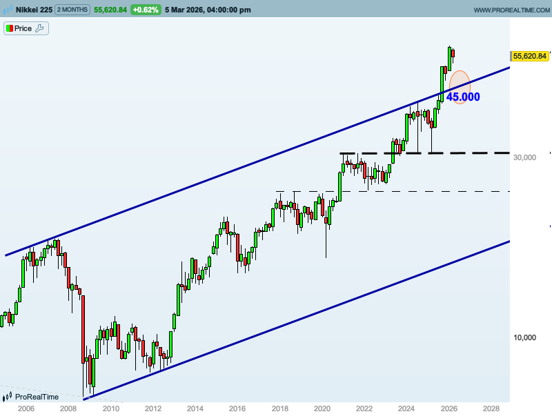 Por tanto, es muy probable que el Nikkei baje a la zona aproximada de los 45.000 puntos, que representa también una caída aproximada del 15%. Y si se esto ocurre y se respeta dicho nivel, podría ser una oportunidad de compra para el medio y largo plazo.