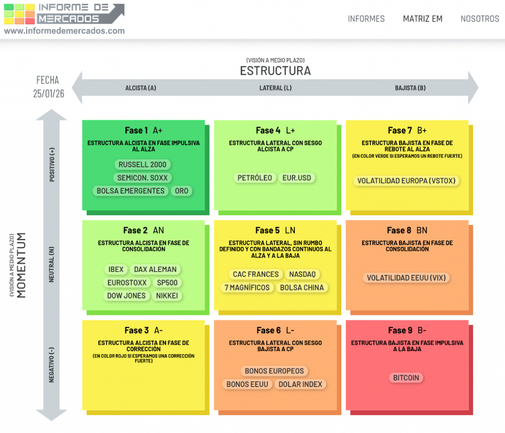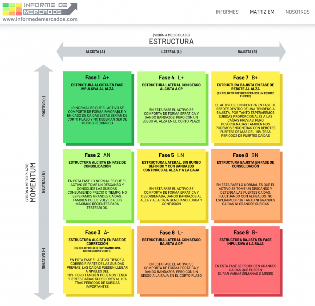 Más información de cómo interpretar la Matriz se puede encontrar en nuestra web https://informedemercados.com en la pestaña de Matriz EM.