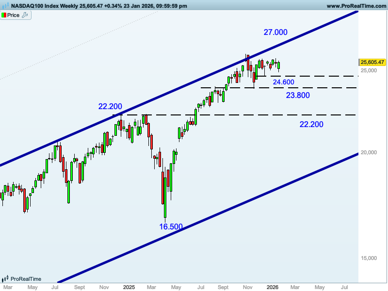 Y lo mismo para el caso del Nasdaq 100, en el que los niveles de soporte están muy claros: 24.600 y 23.800 puntos.