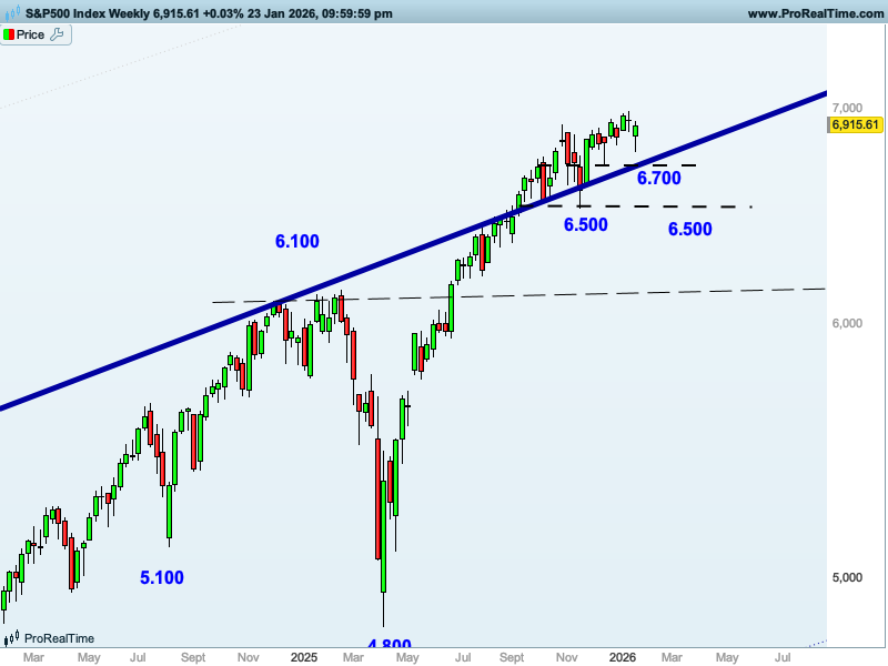 GRÁFICO SEMANAL DEL SP500 CON ESTRUCTURAS Y NIVELES CLAVE DE CORTO Y MEDIO PLAZO