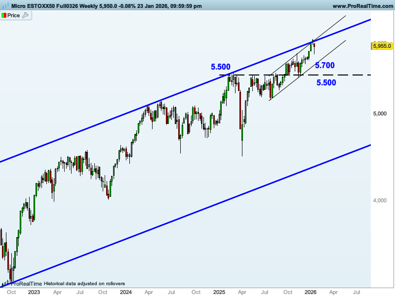 GRÁFICO SEMANAL DEL EUROSTOXX 50 CON ESTRUCTURAS Y NIVELES CLAVE DE CORTO Y MEDIO PLAZO