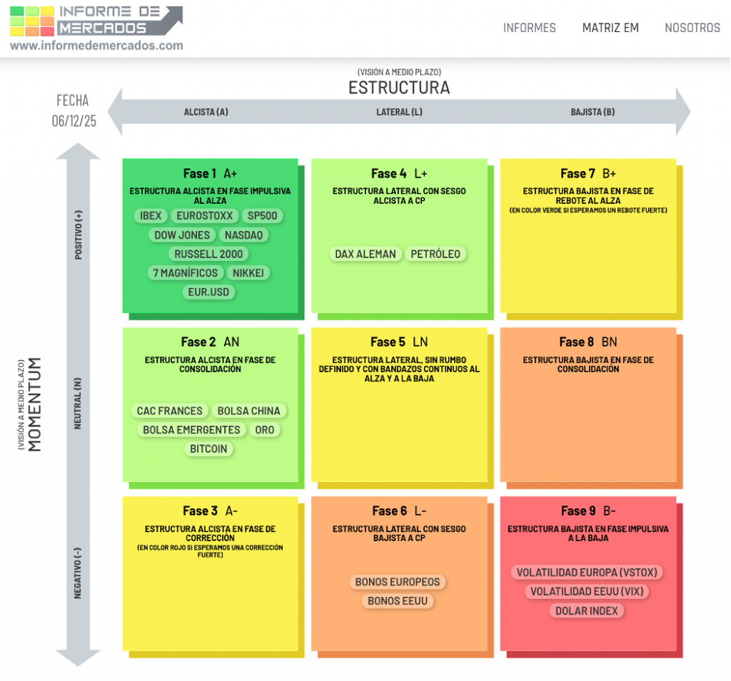 Más información de cómo interpretar la Matriz se puede encontrar en nuestra web https://informedemercados.com en la pestaña de Matriz EM.