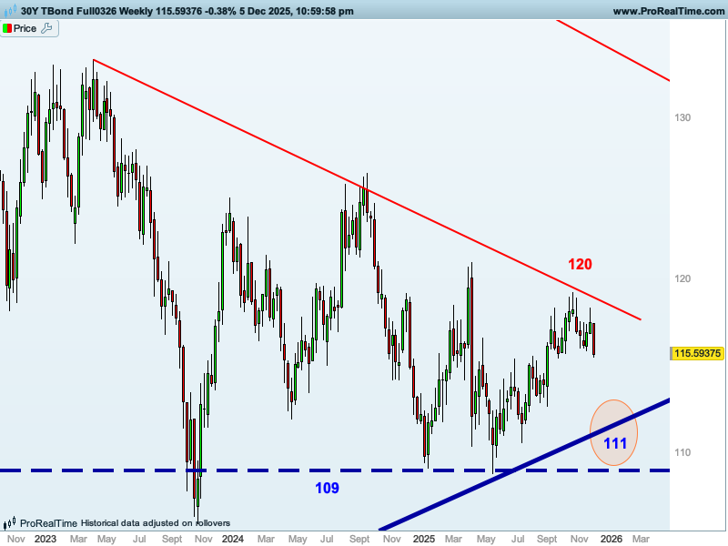 GRÁFICO SEMANAL DEL T-BOND – BONO DE EEUU A 30 AÑOS, CON ESTRUCTURAS Y NIVELES CLAVE DE MEDIO PLAZO