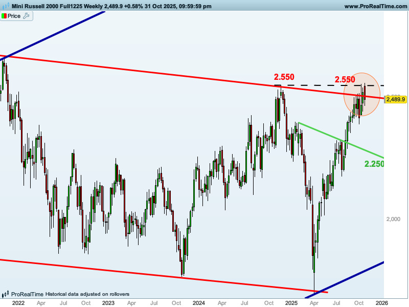 GRÁFICO SEMANAL DEL FUTURO DEL RUSSELL 2000 CON ESTRUCTURAS Y NIVELES CLAVE DE MEDIO PLAZO.