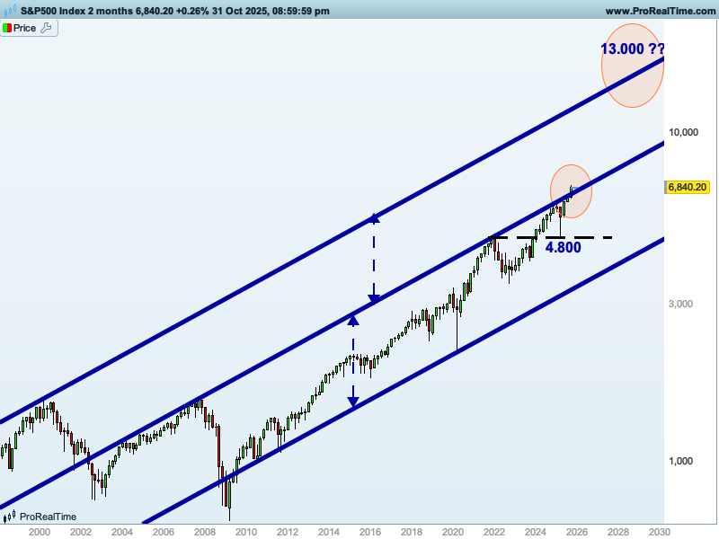 GRÁFICO BIMENSUAL DEL SP500 CON ESTRUCTURAS Y NIVELES CLAVE, Y PROYECCIONES A MUY LARGO PLAZO