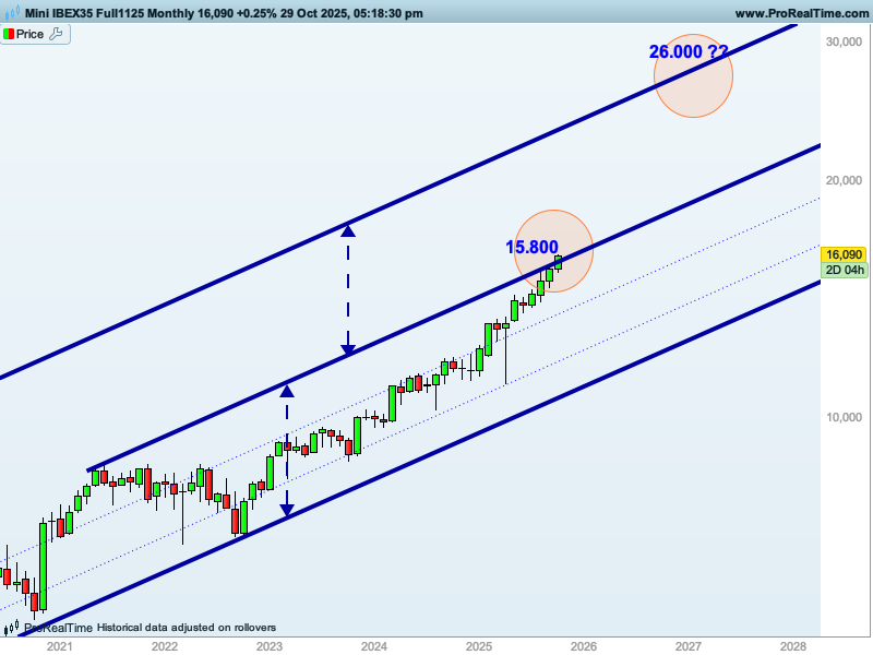 Y finalizamos esta parte de visión de muy largo plazo, con el Ibex 35.