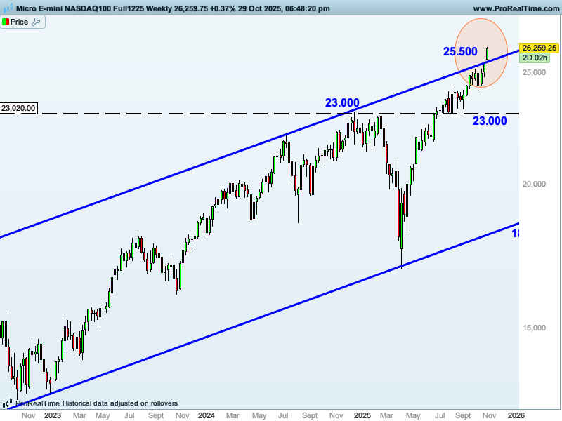 GRÁFICO SEMANAL DEL FUTURO DEL NASDAQ 100 CONFIRMANDO SUPERACIÓN DE ESTRUCTURAS Y NIVELES CLAVE DE MEDIO PLAZO