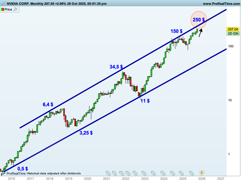 GRÁFICO MENSUAL DE NVIDIA CON ESTRUCTURAS Y NIVELES CLAVE DE LARGO PLAZO