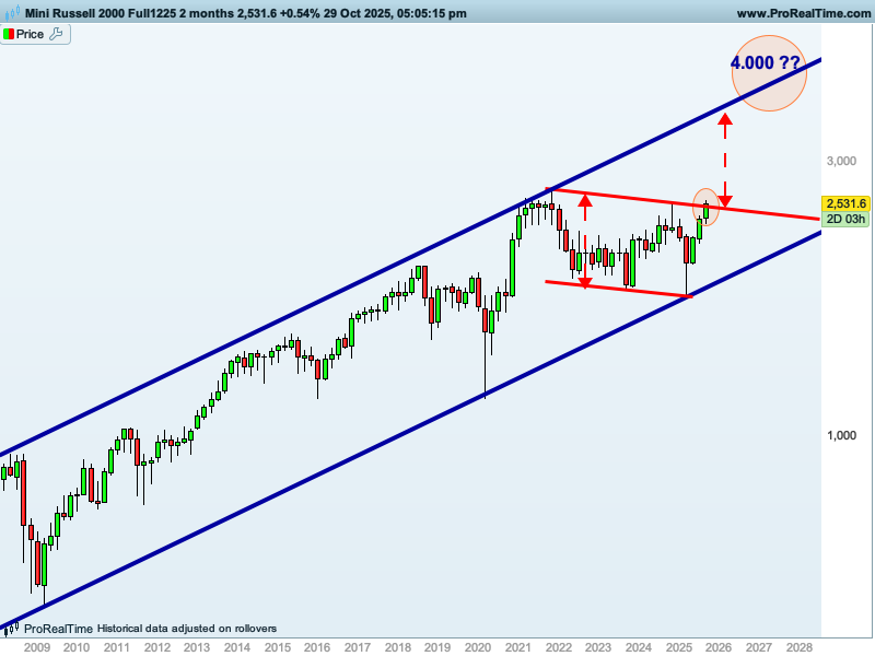 GRÁFICO BIMENSUAL DEL FUTURO DEL RUSSELL 2000 CON ESTRUCTURAS Y NIVELES CLAVE DE MUY LARGO PLAZO (AÑOS VISTA)