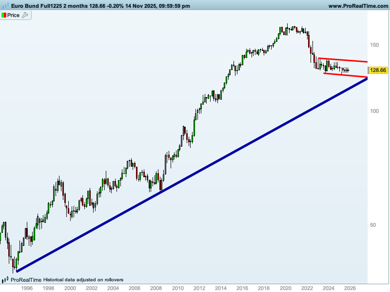 GRÁFICO BIMENSUAL DEL BUND ALEMÁN (BONO A 10 AÑOS) DESDE 1995 CON ESTRUCTURAS Y NIVELES CLAVE