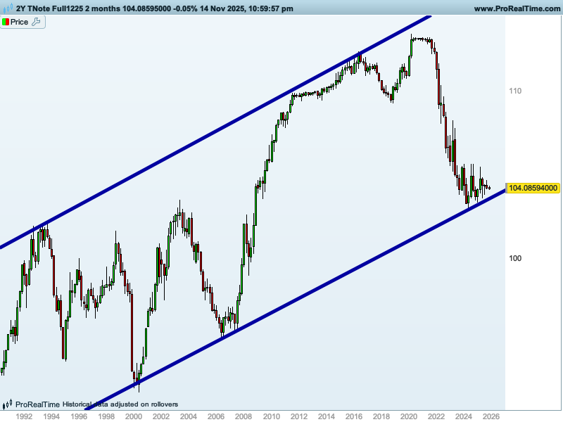 GRÁFICO BIMENSUAL DEL BONO AMERICANO A 2 AÑOS CON ESTRUCTURAS Y NIVELES CLAVE DE LARGO PLAZO