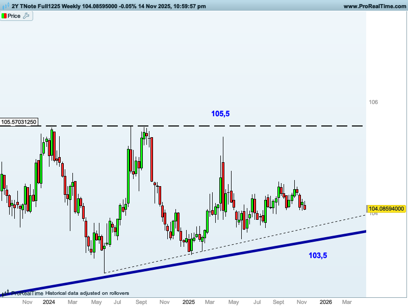 GRÁFICO SEMANAL DEL BONO DE EEUU A 2 AÑOS, CON ESTRUCTURAS Y NIVELES CLAVE DE MEDIO PLAZO