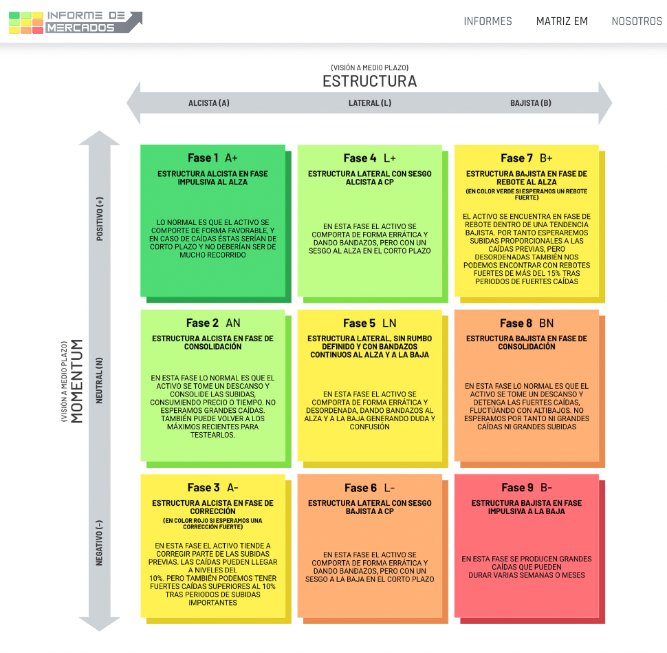 Más información de cómo interpretar la Matriz se puede encontrar en nuestra web https://informedemercados.com en la pestaña de Matriz EM.