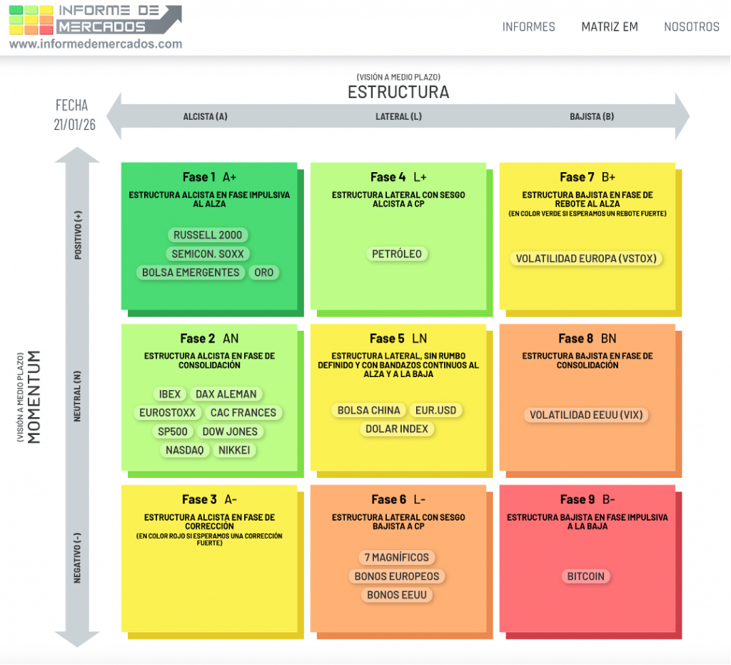 Más información de cómo interpretar la Matriz se puede encontrar en nuestra web https://informedemercados.com en la pestaña de Matriz EM.